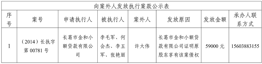 河南省长葛市人民法院 关于向案外人发放执行案款的公示