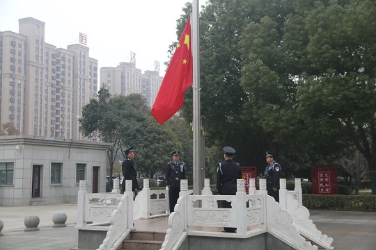 上午8时30分,升旗仪式正式开始。伴随着雄壮激昂的国歌,鲜艳的五星红旗冉冉升起、迎风飘扬。全体干警身着制服,精神抖擞,面向国旗行注目礼,心中涌动着对祖国的无限崇敬和对司法事业的坚定信念。