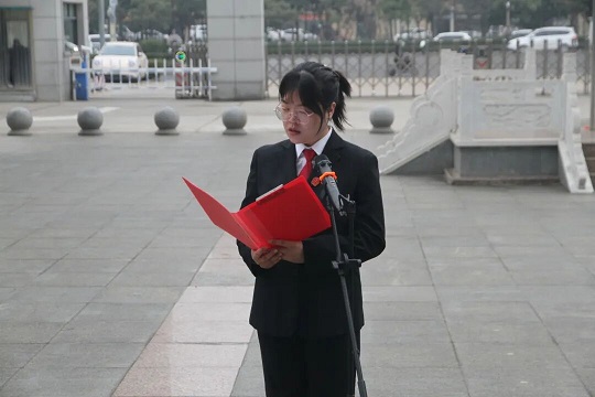 升旗结束后,青年干警代表依次发言。古桥人民法庭副庭长张颖,分享了古桥法庭过去一年的亮眼成绩,讲述了自己践行“枫桥经验”、扎根基层化解矛盾的履职故事,表达了新一年在提质增效、为民服务、廉洁自律上实现新突破的坚定决心。执行局青年干警任德广结合过去一年办理执行案件、撰写宣传稿件等方面的工作经历,展现了执行干警攻坚克难、守护公平正义的责任担当,他表示,新的一年将以更饱满热情投身执行工作,奋力拼搏、砥砺前行,不负青春使命。