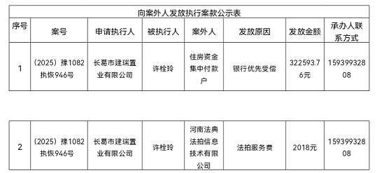 为严格执行案款发放,规范执行案款发放程序,确保案款发放安全,根据《最高人民法院关于执行款物管理工作的规定》等相关规定要求,现将本院拟向案外人发放的案款公示如下(详见下表),公示期为三个自然日(2026年3月10日---2026年3月12日),公示期间,案件当事人或其他案外人如有异议,应当在公示期内提出并提交相关证据材料,公示期满无异议的,本院将按执行案款管理的相关规定办理发还手续。
