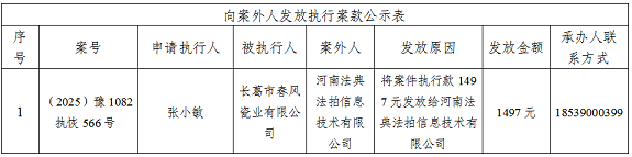 河南省长葛市人民法院关于向案外人发放执行案款的公示 (2025)豫1082执恢566号