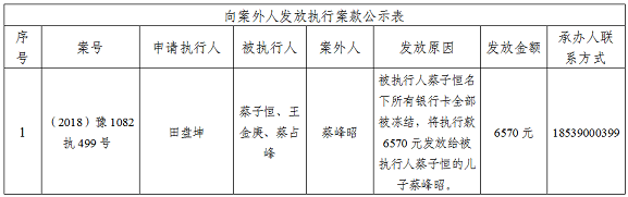 河南省长葛市人民法院关于向案外人发放执行案款的公示 (2018)豫1082执499号