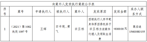 为严格执行案款发放,规范执行案款发放程序,确保案款发放安全,根据《最高人民法院关于执行款物管理工作的规定》等相关规定要求,现将本院拟向案外人发放的案款公示如下(详见下表),公示期为三个自然日(2025年1月13日---2025年1月15日),公示期间,案件当事人或其他案外人如有异议,应当在公示期内提出并提交相关证据材料,公示期满无异议的,本院将按执行案款管理的相关规定办理发还手续。